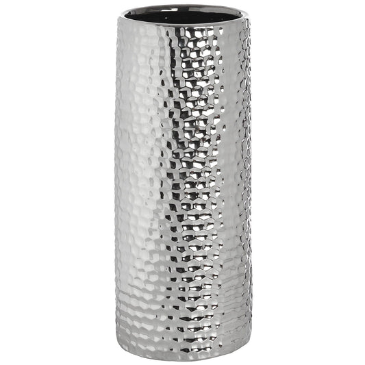 Square Silver Ceramic Dimple Effect Vase